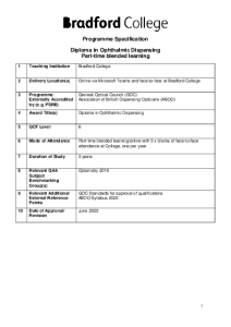 The part-time Diploma in Ophthalmic Dispensing is aimed at those who are currently working in an optical practice, who wish to work towards becoming a fully qualified and registered Dispensing Optician. This course will provide a combination of asynchronous digital activities, evening seminars and face to face learning, allowing you to study at a time and place that best suits you. There will be a block release at the end of each academic year, whereby you will attend Bradford College for a period of up to four consecutive days.