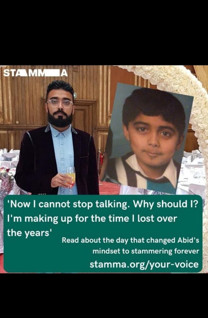 Abid has published blogs setting out how he was affected by a stammer from a young age. He explained: “The earliest memory of me stammering is from 1988, ten years old and in middle school.