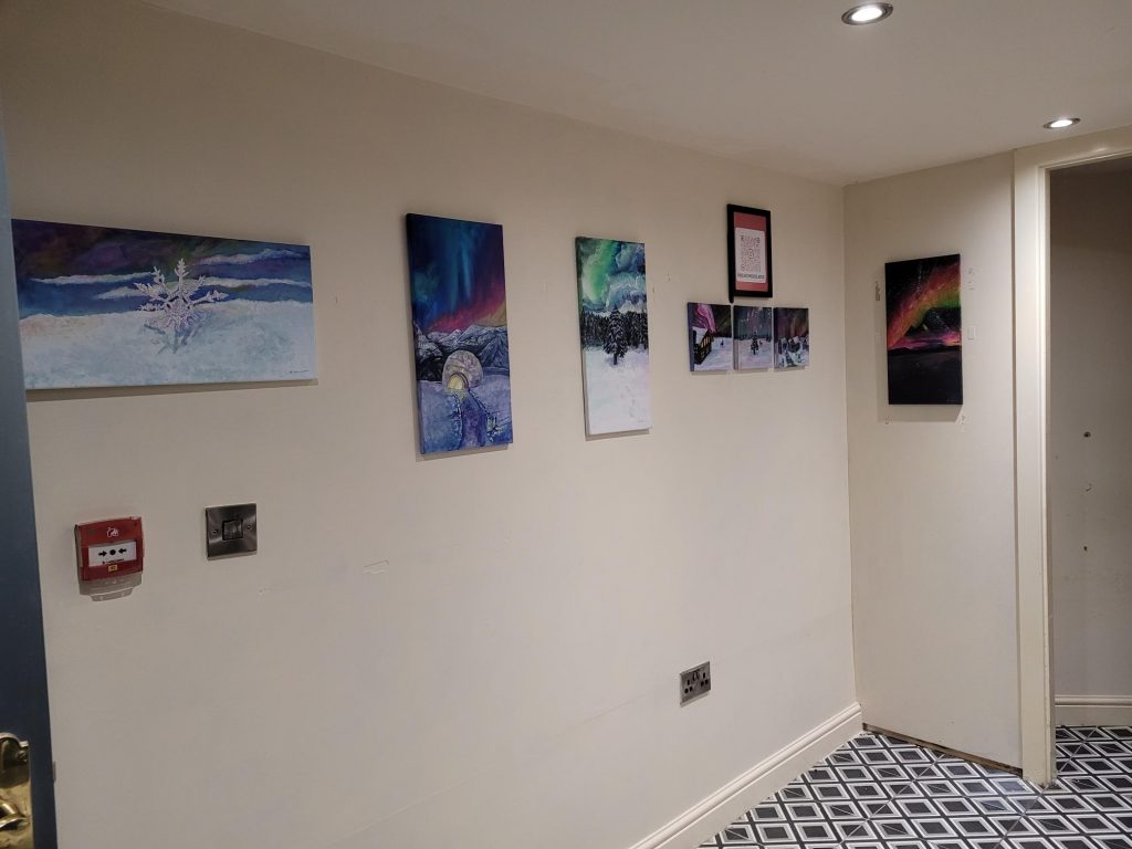 Northern Lights-inspired artwork painted by Bradford School of Art graduate Beth Menzies is on display at a city centre arts and photography exhibition.