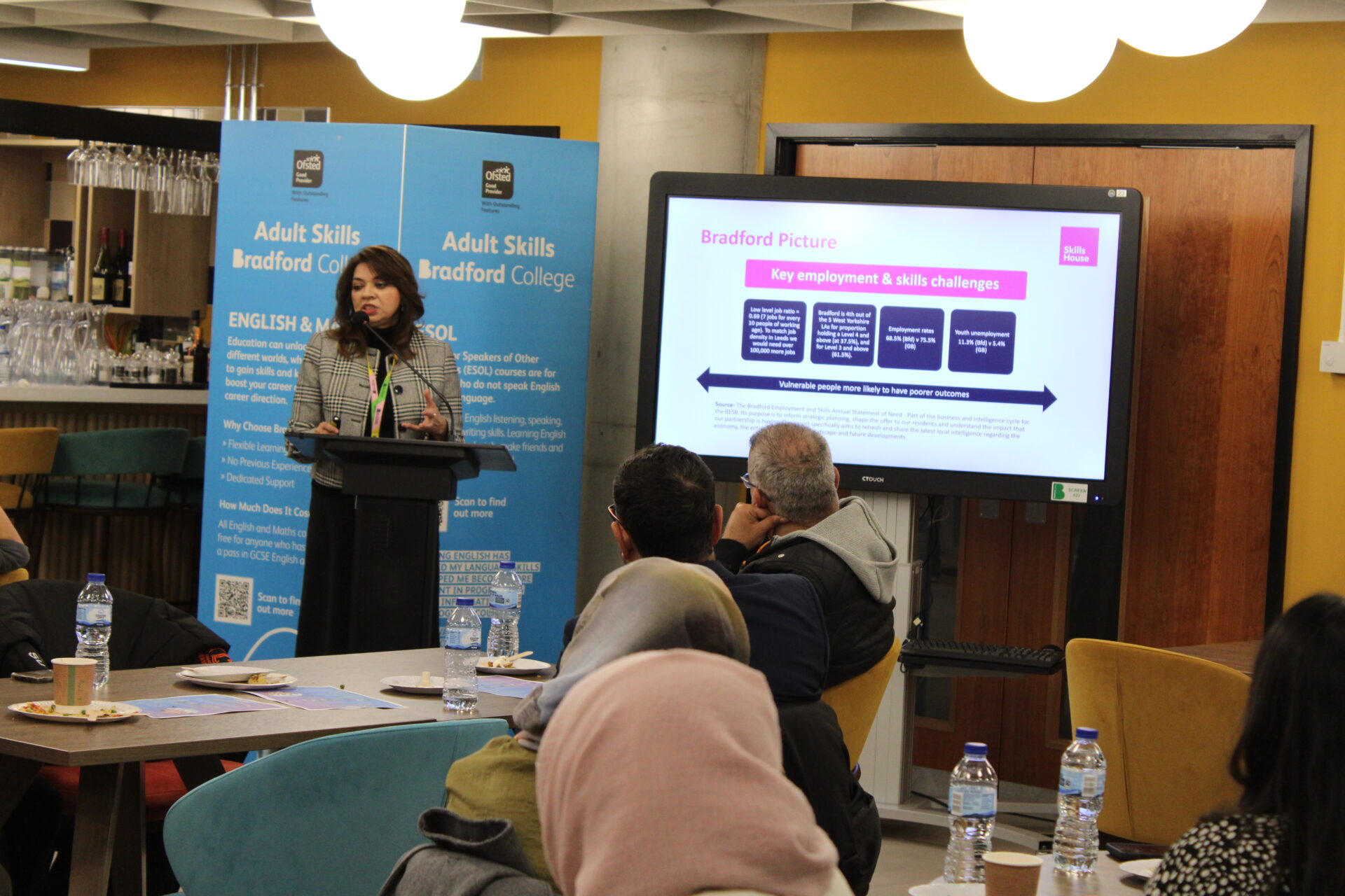 Guests enjoyed catering provided by Adult Catering students, who prepared and served a selection of dishes as part of their practical training in the College’s on-site restaurant. The event offered a valuable networking opportunity for local stakeholders to learn more about Bradford College’s adult skills provision and explore ways to work together to support learners across the district.