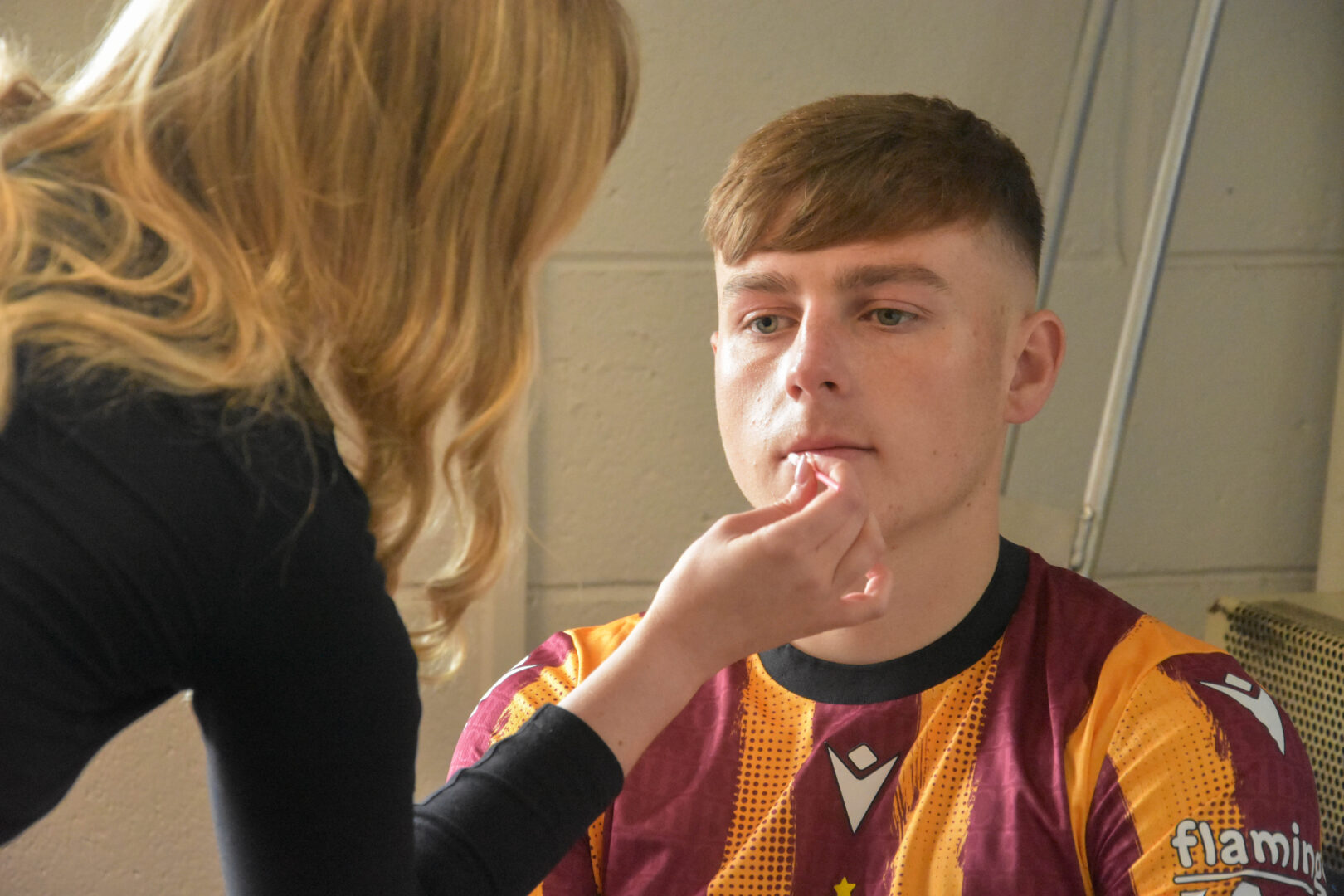 One Media Make-Up student, Ella Whitehead, spoke more about her experience: “As make-up artists, we were asked to make each and every player look great on camera with natural yet flawless-looking skin. I made sure I had a wide range of products for different skin tones and skin types in my kit so that I could cater to every player and actor. The days were a success and everyone pulled together to do their bit excellently. I was glad to be part of such a lovely experience and I feel honoured to have been chosen by Bradford College staff to participate. I’ve gained lots of valuable experience as a student make-up artist and had a taste of what the industry is really like to work in.”