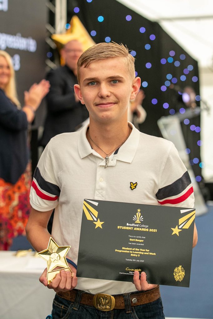 Receiving the award for Student of the Year for Progression to Learning and Work Entry 3 was Gert Burger. Gert came to the college, having recently settled in England after arriving from South Africa. Since beginning the course, he has demonstrated excellent attendance and punctuality and a very positive attitude towards learning. Gert said: “I’m very excited and proud!”